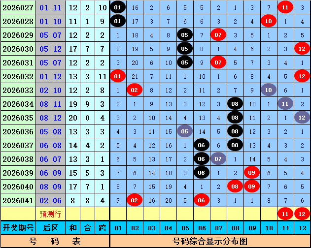 后区分析:在第042期历史同期开奖中,后区奖号全奇出现3次,全偶出现2次,一奇一偶出现14次,今年第042期后区预计出现一奇一偶组合,看好两码11和12。